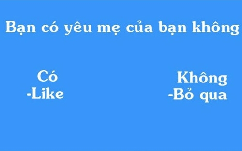 Khi cơn càn quét của việc câu "view" câu "like" từ các apps còn chưa kết thúc thì mới đây trên facebook lại rộ lên một trào lưu mới với việc post các hình ảnh “bắt buộc phải like” đánh vào tình cảm của các facebooker như: “Bạn có yêu mẹ của bạn không?” “Có” thì “like”, “không” thì “bỏ qua”.