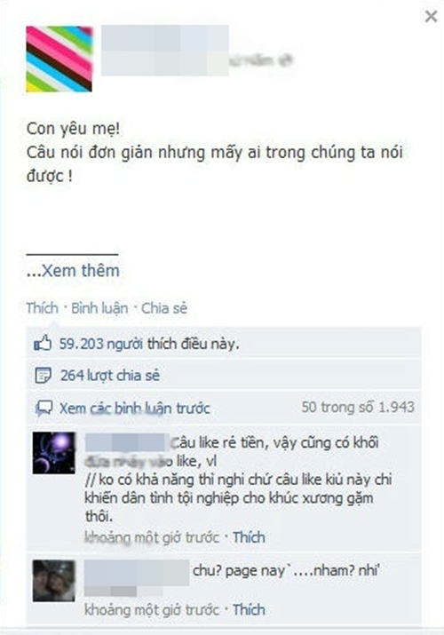 Một điều thực tế rằng chẳng có ai là không yêu mẹ, người đã mang nặng đẻ đau sinh thành và nuôi dưỡng chúng ta. Và để bày tỏ lòng yêu thương đó không ít các bạn đã bấm nút “like” mà không hề suy nghĩ nhưng họ không ngờ rằng tình yêu thương ấy đang được chính các fanpage “bán” đi với một cái giá khá hời.